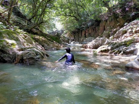 鈍川渓谷の清流の中をさかのぼっていく夏の冒険!