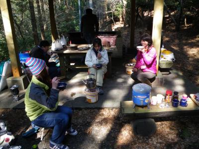 具体的には、ロープワークを学び、ロープとブルーシートでタープを張り、快適なキャンプサイトを作ったり。